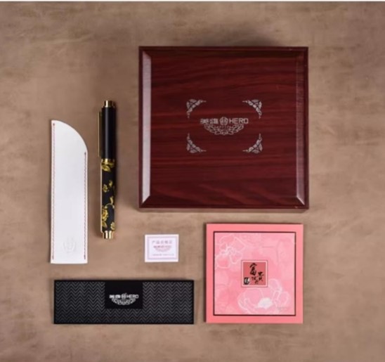 英雄匠心100# 龙年14K金笔(左一),采用独有的36道加工工艺,每一次执笔书写,轻盈的写感都如腾龙驾雾。